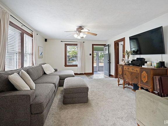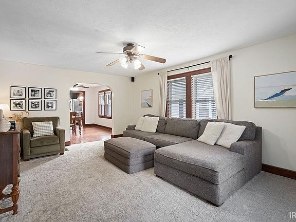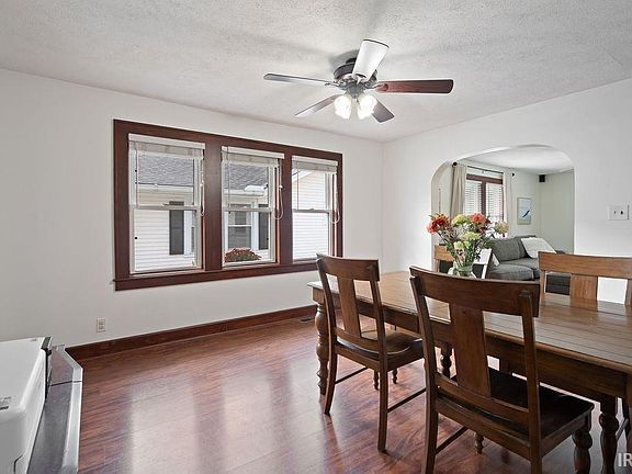 Charming, updated, and very well maintained 3 bedroom 1 bath bungalow offering 1088 sq ft of comfortable and move-in ready living space. Conveniently located within walking distance of Highland Park and IUK! Enjoy relaxing on the enclosed front porch that provides an inviting entry. Inside, you'll find a spacious living room with an arched entrance to the dining room, highlighted by a built-in bookcase and ample natural light. The kitchen features solid wood cabinetry, quartz countertops, tile backsplash, and newer stainless steel appliances. A cozy breakfast nook adds additional cabinetry and counter space, ideal for extra storage or a beverage station. The home has been well cared for, with a newer furnace and AC within the past 5 years, and a water heater less than a year old. Outside, enjoy a bonfire on a crisp fall evening in the privacy of a fenced in backyard. 2 car detached garage, and great curb appeal! All you have to do is move in!