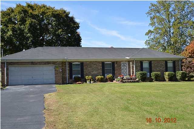 All brick home and all one level. This home has only had one owner and offers a den with a brick fireplace that covers a wall that offers a firepit to cook on and a opening separate to warm up by. Sit and enjoy this fireplace while you look at the sliding doors to the back yard. Back yard has a in-groud pool that is completely fenced in and needs to be repaired. The back yard touches a farm area that offers a grea view and a mountain view. Lots of kitchen cabinets in the kitchen that has a dining area to sit at also. Laundry area is off the kitchen. Three xtra large bedrooms the master bedroom has a full bath also. Hall bath has been updated with a garden jetted tub. Living room that also has a formal dining area. Two car garage has a room that has been added but can be removed that has a sink and wash area that was used in the past as a dog grooming area. Drive way is xtra wide and plenty of room for parking.
