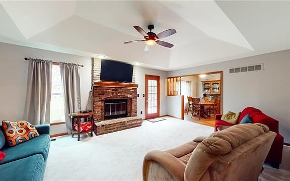 Great value in south Olathe! Well maintained Ranch on a HUGE lot, within walking distance to award winning Olathe Schools. Highly desired neighborhood that has grocery, restaurants and parks/trails close by. This home has neutral colors throughout, and also features main floor laundry and no popcorn ceilings! The spacious living room has a beautiful brick fireplace insert, and tons of natural lighting. Eat-in kitchen area and large pantry. Stainless steel appliances have all been updated. Master has two closets and a private bathroom with walk in shower. Two-tiered deck with a large shade tree provides a tranquil setting to the large backyard. The level backyard includes a storage shed and is a blank canvas to make it your own. Unfinished basement, with a finished (flex) room that could be made into a non-conforming 4th bedroom. No HOAâs.