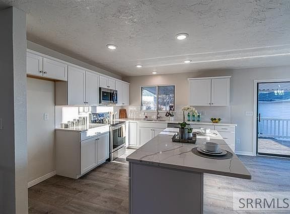 This hillside home has so much to offer. The upper level is wide open and hosts 3 bedrooms and 2 full baths. The remodeled kitchen has brand new white cabinets, new countertops and new stainless steel appliances. Just off the kitchen is a large covered deck. The lower level hosts a large bedroom, full bath and laundry. The back yard is beautifully landscaped and is home to a large shop with an RV sized overhead door. In addition the two car garage is extra deep. Don't miss this established home that better than new!