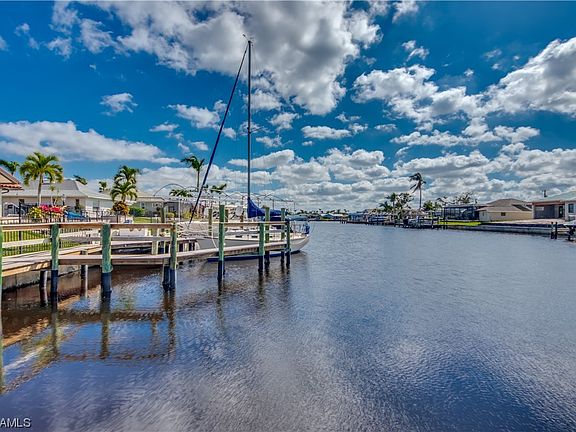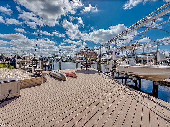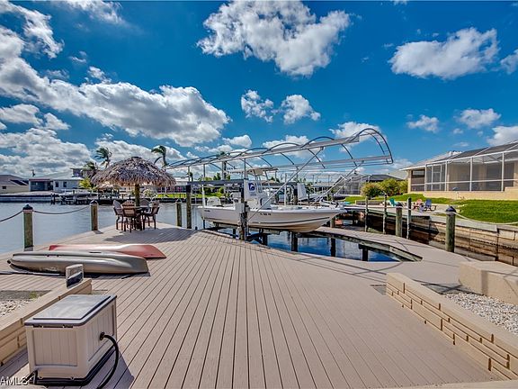 Paradise found in this meticulously maintained 3 bed 2 bath sailboat access home boasting almost 1,900 sq ft of Florida living located in the desirable Palaco Grande section of SE Cape Coral. You will find this forever home loaded with all of the most wanted upgrades including an oversized lot, open floor plan with a center island kitchen, granite throughout, stainless steel appliances, crown molding, recessed lighting and pocketing sliders. Water views surround you from almost every room while your heated pool is just steps from multiple sliders which will lead you out to the huge covered lanai with multiple seating areas. Just a few steps more and you are at your amazing composite boat dock with a 10,000 lb lift, tiki hut and kayak launch that overlooks a 150ft plus wide Gulf access canal. You are just minutes to the Caloosahatchee River and the beautiful waters of the Gulf of Mexico. This absolute gem had no Ian damage and is waiting for you to call it home. Homes this perfect don't come around often so schedule your showing before it's gone !