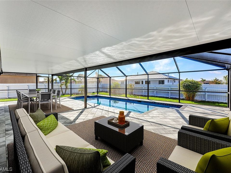 This is the perfect house to raise your family and even have space for the In-Laws. With over 3200 sq ft, this immaculate, newly renovated home is ready to be called home. Built in 2017 and everything being practically new, this gorgeous home has a brand-new salt-water pool that has never been swam in as well as a brand-new lanai. With a HUGE area upstairs, it's the perfect place for the kids to make their own space and room for all of their friends. Located close to some of the best schools in Cape Coral, both Elementary through High Schools, this is the perfect place to raise the family. Some of the pictures are a virtual staging so you can see what theis beautiful home could look like. Home has been under contract 2 times. Each time it has come back on the market was due to not able to secure financing. This has gone through 2 inspections, and has done well each time. ALL ASSESMENTS PAID!!! NO FLOOD ZONE!!