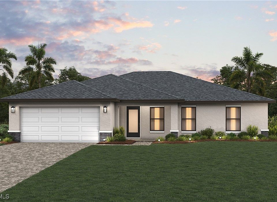 NEW CONSTRUCTION WITH WARRANTY! The Hibiscus open-concept design blends the living room, kitchen, and dining area, the ideal space for gathering and entertaining. The living room features a tray ceiling and a wall of glass sliders that open to the large covered lanai, where you’ll create the perfect outdoor oasis. The kitchen has a freestanding island and generous cabinet and counter space, including a pantry. The primary suite caters to life’s little luxuries – a tray ceiling in the bedroom, two large closets, and a private bathroom with a dual sink vanity and tiled shower. On the other side of the home for maximum privacy, two guest bedrooms share the second full bath. The home features a glass light front door, tile throughout the main living areas & wet areas, hurricane-impact doors & windows, granite counters in the kitchen & baths, stainless steel appliances, paver driveway, & so much more!