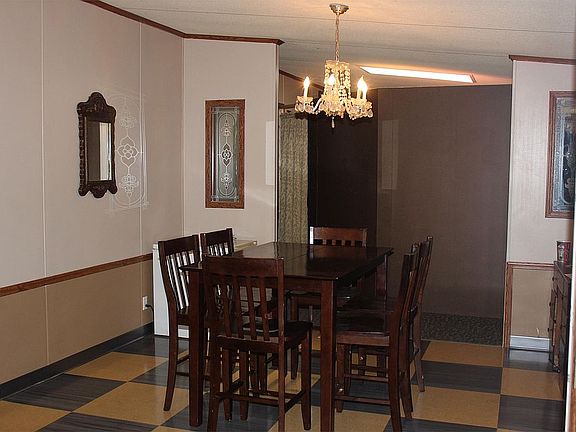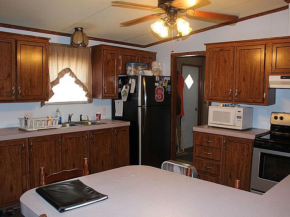 Ready and waiting for you! Located on over an acre of land, this quiet country home is only two miles from everything i.e., shopping, schools, medical, recreation, etc. This affordably priced and roomy doublewide comes complete with covered front porch and brick skirting. Features living room, den, dining area, master bedroom with walk-in closets, glamour bath with garden tub, separate shower and double vanity.