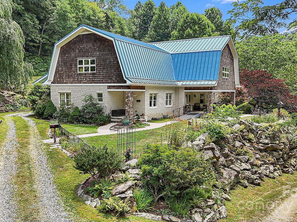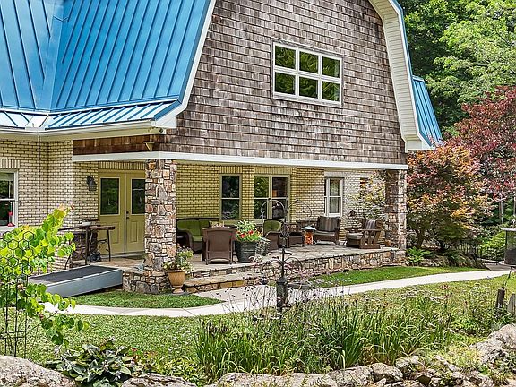 On the market for the first time! Meticulous Dutch Colonial style home, bold creek, large barn, pond, trails, green spaces, and gardens on 36+ acres. Hike on your own property! Manicured trails are in place that meander alongside the creek and to the pond. 4 bedrooms and 6.5 bathrooms. Incredible home office space! Bring your business! High speed internet. All bedrooms are on the main floor with en suite bath. Sunroom and access to outdoor patio from primary Master suite. Radiant floor heat and central air. On the upper level there is a vast workspace/hobby room, a bonus space with a full bathroom, and a storage room. Would make an incredible studio or home business space! Expansive workshop on lower level along with full bathroom, and 2-car garage. Large barn features a sealed and insulated upstairs and plenty of room to store equipment on the ground level. Established gardens and mature landscaping throughout. Easy access to Max Patch, Hot Springs, Waynesville, Asheville!