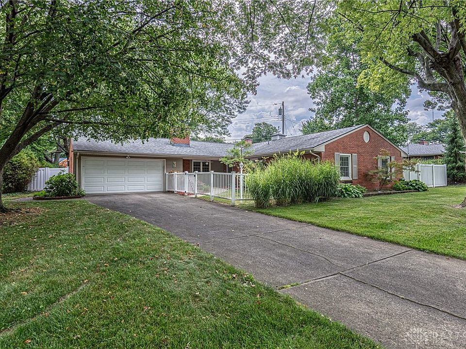 An inviting front porch says Welcome Home to this nicely appointed 3 BR, 2 full bath brick ranch with numerous updates. Boasting over 1850 square feet of living space, the open floor plan seamlessly connects the kitchen, complete with a generously sized breakfast bar, to the inviting dining area and spacious living room, creating an ideal space for entertaining friends and family. Cathedral ceilings & skylight give ample natural lighting. Both the en suite bathroom and hall bathroom have been updated. Step into the cozy family room, adorned with a gas fireplace, where you can unwind and create lasting memories. Your own private oasis awaits just beyond the sliding doors, with a screened-in patio featuring a ceiling fan, overlooking a serene and fully fenced backyard. Whether you're sipping morning coffee or hosting evening gatherings, this outdoor haven offers the perfect setting.