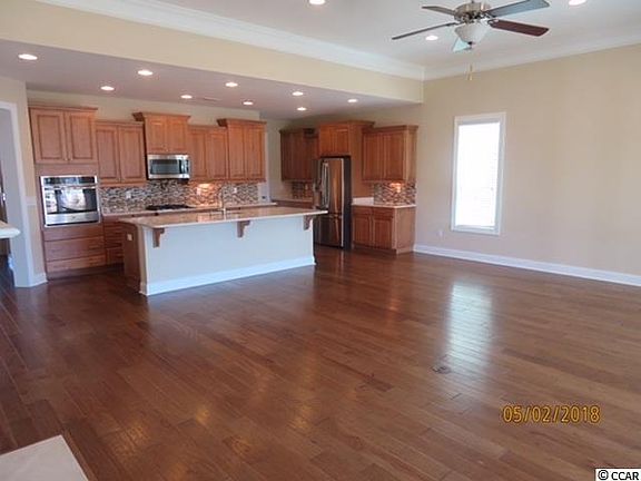 First Model Home Loaded with so many upgrades, Comes with Refrigerator, washer and dryer and so much more! A must see! Are you ready to live the easy life, walk to the movies, shopping or a short golf cart ride to the beach. Then Cresswind is just the place for you. Located in Market Commons, this active adult community has so much to offer from a 12,000 sq ft clubhouse with so many activities we can not list them all, fully equipped gym, large pool and hot tub with tennis, pickle ball and more! Not to mention the walking-bike trails. Sit on your front or rear patio while your manicured lawn is being maintained for you, enjoy a cocktail or two with your new friends living the lifestyle you worked so hard for. This home is ready to move in now. This 3 bedroom 2 bath home with large laundry room, front porch and rear patio, wood floors, custom Kitchen can be yours.