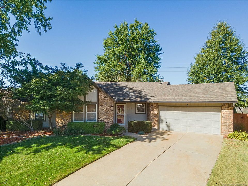 Beautiful Updates & Great Location! Fresh interior paint & updated flooring. Open Kitchen feels like new with bright white cabinets, recessed lighting & pantry. Dining w/updated light fixture overlooks backyard. Vaulted & beamed Living with fireplace. Spacious vaulted Master Suite with double sink vanity & two walk-in closets. 2 additional Bedrooms & large hall Bath. Oversized covered patio, full privacy fence, mature trees & landscaping! Close to restaurants & shopping, just minutes to Creek Turnpike. 2020-10-18