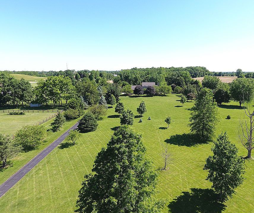 Meticulously maintained 4 bedroom home on 5 acres out in the country in Spring Valley Township, just minutes from Xenia and Bellbrook. Entertain family and friends in many outdoor spaces from the wrap-around front porch to the multi-tiered deck and paver patio facing a large back yard. Very private back yard is adjoined by woods. The upper-level deck is covered. The home features a first-floor master bedroom suite with luxury bath and his-and-her closets. The master bath also has jetted corner tub, large walk-in ceramic tile shower, and large vanity with solid surface double sinks. The custom-designed eat-in kitchen has a bar and solid-surface countertops, stainless appliances, and a large bay window area looking out into the backyard. The kitchen looks into a large dining room with atrium doors out to the covered deck. The kitchen, dining room, and entryway have solid oak hardwood floors. The living room has a gas log fireplace and bay window. A den adjoins the living room and has an atrium door leading to another covered deck overlooking the patio. A first-floor laundry room and half-bath come off the mudroom, all with ceramic tile. The second floor features 3 large bedrooms, each with walk-in closets. The spacious custom second-floor bathroom features ceramic tile, large walk-in shower with rain glass doors, an elegant slipper claw-foot tub, and marble top double vanity. Beautiful country views from all rooms in the house. Two bay windows. Six-panel doors throughout house. The partially-finished full walk-out basement features a spacious rec room with solid cherry bar and double doors leading out to the paver patio and back yard. Plenty of storage in unfinished side of basement. Broadband high-speed internet through Spectrum. Hardwired security system. Oversize 3 car insulated garage with openers. Large 30'x40' pole barn with concrete floor and 220v 50 amp service. Drone video URL: https://bit.ly/2YMaTdi -- Call homeowner at 513-267-4787.