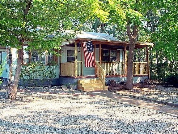 Adorable, Cabin in the Woods. Home is currently tenant occupied. Recently updated, painted, corner lot house, boasts hardwood floors throughout, 2BR, 1 bath w/shower stall-new vanity, eat in kitchen with dishwasher-stove-refrigerator-breakfast bar-tons of cabinets. Huge covered front porch with railings, stoned yard-no lawn maintenance, fenced yard detached garage/ shed w/laundry area including washer and dryer, storage/work area. Quiet community in walking/biking distance to Deerhead Lake. Newer updates: interior totally repainted, house power washed, new porch railings and front steps. Great investment property, great location. PLEASE STAY OFF OF PROPERTY, CALL YOUR AGENT TO VIEW THIS ADORABLE HOME.