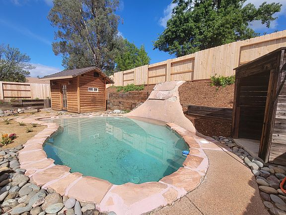 SWIMMING POOL SEASON IS HERE! Enjoy the gunite pool and MAJOR NEWER UPGRADES and UPDATES. The HVAC & water heater were changed about 3 years ago. New roof in October 2019. FRESHLY PAINTED INSIDE AND OUTSIDE TOO & HAS RECENT RENOVATED QUALITY BATHROOMS. This 3/2 home is move in ready with great floor plan with a cool stone fireplace in the living room & Includes a walk in closet in the master bath, with a door out to the backyard. The front and backyards are landscaped with a water feature in front and an inground pool in the back. The backyard includes a custom ''She Shed'', garden beds, natural gas for your bar-b-que, hot tub & deck. The living room flows into the large dining room, kitchen. Gate for small boat or small trailers. OPEN HOUSE SATURDAY 4/23/22 at 9:30 to 12:30