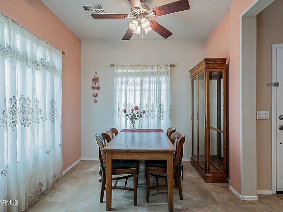 CUTE, COZY, and so well-kept!! Step up to the front door with a lovely lil courtyard welcoming you. Enter this beautiful home with the 18'' x 18'' creamy tan ceramic tile flooring extending through the hallways, kitchen, great room, and bathrooms. Stainless steel appliances (all energy-star rated), stainless steel sink, and upgraded faucet adorn the kitchen. You'll love the eat-in area right by the window, the sufficient pantry space, and how you overlook the great room too! Light and bright great room leads to good-sized backyard and covered patio area. Simple desert-landscaped backyard is ready for you to add your garden, BBQ, and patio set, so you can relax and enjoy. Master bedroom boasts 3 windows and a lengthy walk-in closet.