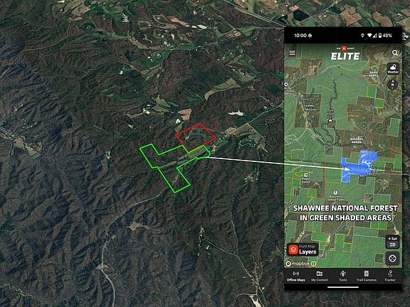 Exclusivity! This is a prestigious fortress with endless potential for the affluent, discerning hunter seeking a legacy property for trophy hunting and ultimate privacy. Comprised of 184 surveyed acres, this recreational land is surrounded by the Shawnee National Forest...over 13,000 acres of it. This tract is perfectly set up for trophy management and immediate use. The property features a dense, trail-laced timber block complemented by established food plots and room to expand your plantings. Enjoy year-round water sources with a stocked pond and Cooper Creek running through the acreage, drawing and holding game. Approximately 40 acres are currently being farmed, creating an immediate financial return. There is a silica mine located on this property, as photographed. This is a rare opportunity to secure a multi-faceted property that delivers cash flow, significant timber value, and a unique natural sanctuary. There are 2 barns, a detached garage, storage sheds, and a 2-bedroom manufactured home on this property. It is located approximately 20 minutes from Cape Girardeau, MO, and/or Jonesboro, IL. AN ADDITIONAL 75 SURVEYED ACRES WITH A 4-BED, 3-BATH LODGE, ADJOINING, IS AVAILABLE. See the listing for 2196 Wilderness Retreat, Jonesboro, IL.