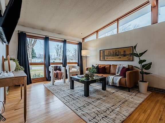 Welcome to this stunning rambler nestled in the heart of South Fargo! Mid-century modern touches throughout this beautiful home. Step inside and be instantly greeted by an abundance of windows, natural light, wood flooring, a family room addition featuring a beautiful fireplace, and charming details throughout. The spacious, open-concept kitchen is ideal for entertaining. With three bedrooms on the main floor and a 2025 bathroom remodel, the layout offers comfort and functionality. Downstairs, enjoy a large lower level with new flooring, a versatile flex space for an office or hobby room, a fourth bedroom, and plenty of storage. This home also has a new furnace and water heater. Outside, a fully fenced backyard awaits with a wood deck, concrete patio, and mature trees that offer both shade and privacy. All this with LOW specials—don’t wait to make this house your new home!