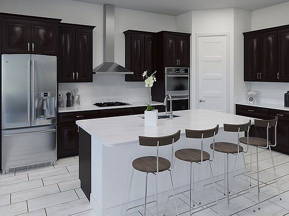 The spacious Martinique, at 2,506 square feet with 3 bedrooms and 3.5 bathrooms, has an abundance of windows, providing natural sunlight throughout the home. The large family room opens to the covered patio, perfect for enjoying the Florida weather. The kitchen is huge, with quartz countertops, GE® stainless steel appliances, double oven and gas cooktop. A full-size pantry makes it easy to store what you need for your favorite recipes, and the adjoining dining room makes it easy to prepare and serve family meals. The master suite is enormous, with double sinks, a water closet and a walk-in closet that will excite any clothes or shoe fan. Enjoy the space of two additional bedrooms along with a den, perfect for guests or even a library for your book collection.