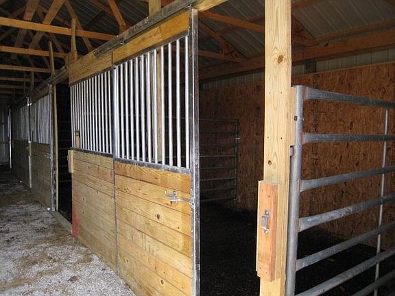 fenced and cross/fenced, mostly all cleared w/pasture, 2 ponds, like new 40 x 60 horse stable w/8 stalls plus an older barn and outbuildings. Updated 2-bedroom, 2-bath country home with open living/dining and kitchen area. Central H/A and drilled well. BEAUTIFUL AREA, GREAT LITTLE FARM! $138,500