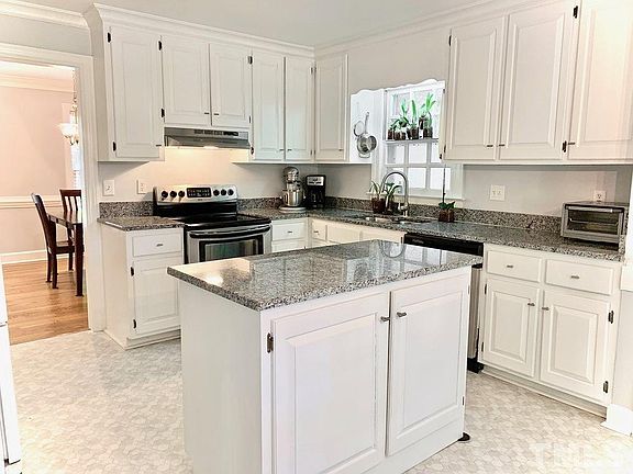 This adorable home is freshly painted inside and out, with new carpet, refinished hardwoods. and new granite countertops. Just down the road from Lafayette Village and Lifetime Fitness and only 2.5 miles from Ravenscroft school with easy access to 540. With an expansive backyard featuring mature shade trees, producing grapevines, and productive fruit trees. The unfinished walk-up attic is perfect for storage or to finish in the future as a bonus room.