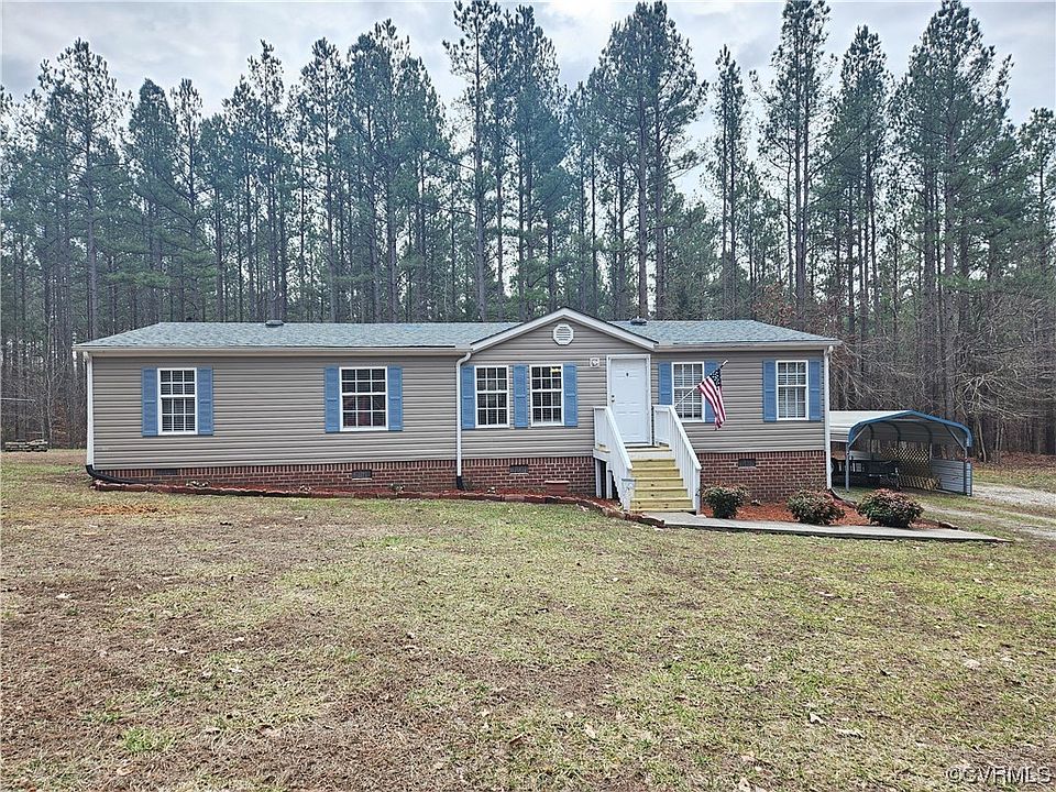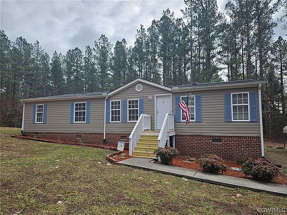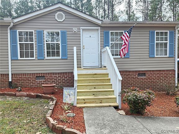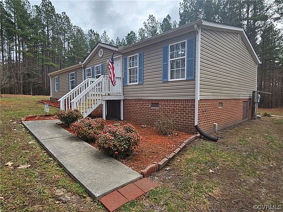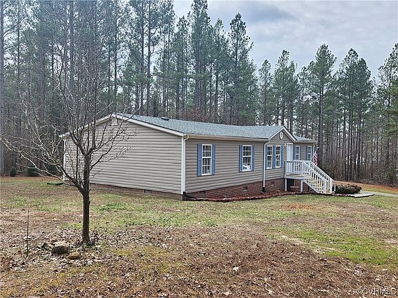 MOVE-IN READY! NICELY RENOVATED 3 Bedroom / 2 Bath HOME on 5 ACRES! Private location with established yard completely SURROUNDED by beautiful mature Pines. Easy Access to US 460 or US 360 and convenient to Blackstone, Chesterfield or Richmond. This home features a generous size Eat-in kitchen with PLENTY of Cabinetry and CENTER ILSE, Open to the SPACIOUS Living Room. In addition, there is a separate Family Room with STONE FIREPLACE with gas logs. There is a nice-sized Master Bedroom with PRIVATE BATH and WALK-IN CLOSET on one side of this home. On the other side are 2 Guest Bedrooms and Full Bath with NEW Tub/Shower. All rooms have BRAND NEW LAMINATE Flooring, and the ENTIRE house has been FRESHLY PAINTED. On the exterior, there is a NEW REAR DECK and Refurbished Front Stoop, NEW front Storm Door, and Best of All a BRAND NEW ROOF. The Heat Pump is only a few years old, the Property Lines are Newly Survey Flagged, and there are many other renovations too numerous to list. In addition, there is a 10x20 Storage Shed WITH ELECTRICITY and refurbished METAL CARPORT. This property is a MUST SEE!
