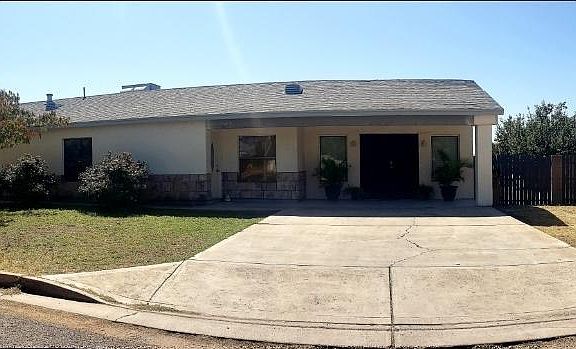 One of a kind- great family home on 2 lots with custom picture windows to enjoy pinetrees and the beautiful weather year-round! Custom dual door entry, porcelain/ceramic tile thoughout the spacious floor plan. No carpets, large bedrooms, master walk-in closet with lots of storage, laundry room equipt with new GE washer and dryer. Newly installed bathroom vanity, mirror, new ceiling fans, and rain showerhead, freshly painted interior. Beautiful cobblestone patio ready for a family gathering or a quiet place to relax.Must see to believe! Se habla espanol.