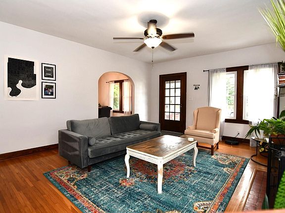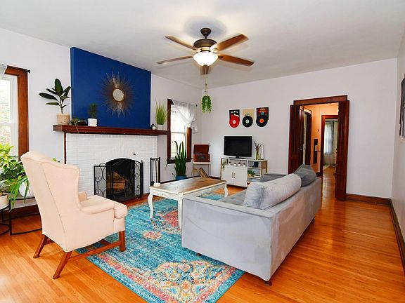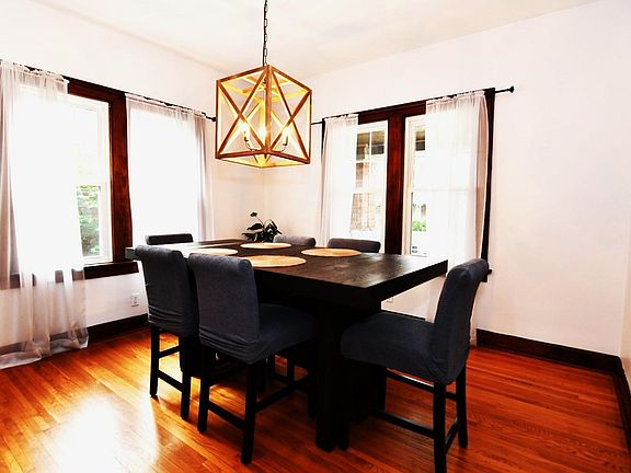 This charming and spacious home is a true gem, offering a partially finished basement and an abundance of character throughout. The beautiful landscaping provides stunning curb appeal...making this home a standout. The large front porch invites you to sit and take in the surroundings and sets the tone for the charm waiting for you inside. This home is complete with original hardwood floors and fireplace that create the perfect atmosphere for relaxation and gatherings. The elegant arched doorway lead into the formal dining room. The original swinging door reveals a completely updated eat-in kitchen, featuring sleek granite countertops, a stylish glass-tiled backsplash and stainless steel appliances. The main level has two spacious bedrooms, both with hardwood floors and share a full bath with original tile details. The newly renovated finished basement expands your living space with a versatile family room complete with a cozy reading nook. An office with a walk-in closet offers the potential for a third bedroom, perfect for guests or as a private retreat. A second full bath and a convenient laundry room complete this lower level, providing functionality and comfort. The fully-fenced backyard is perfect for entertaining or simply enjoying the fresh air. A detached 2-car garage adds to the convenience and appeal of this exceptional home.