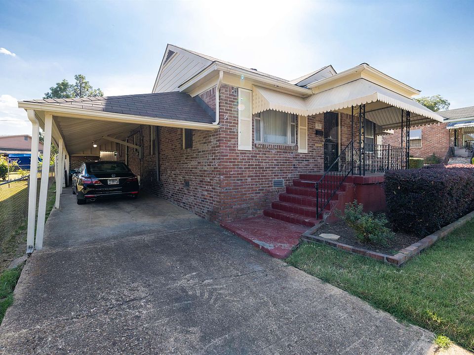 WELCOME HOME! Well maintain brick home would make great starter or rental. Large BedRm; and a Half Bath formal diningRm LivingRm Large Den Eat-In Kitchen walk in Closets Nice 2 Carport front Porch 2 Covered Patios AS-IS; New Roof A/C and Heater 2 yr old MUST SEE EZ to show