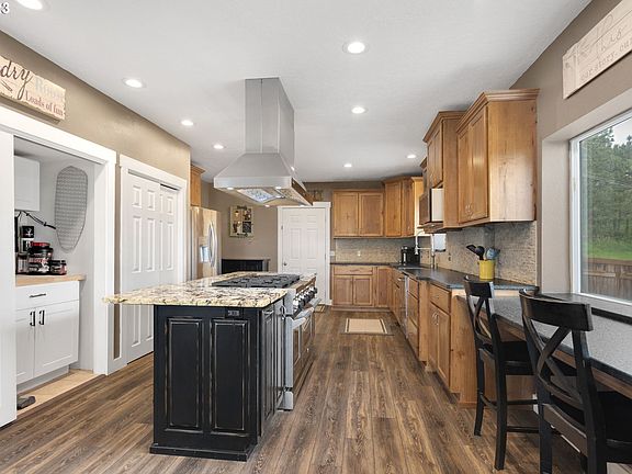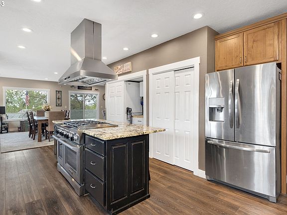 Don't miss this stunning home and shop on two lots in South La Grande, now for sale! This 3 bed, 2 bath home features a custom kitchen with beautiful granite countertops and an island with a built in high-end gas range/oven/grill/vent hood. The shaded backyard has views of the mountains and the city, concrete patios, and a hot tub. The large master bedroom features a custom master bath. Big 30x56 shop on its own lot with a 14 ft door, a 16 ft ceiling, concrete floors, lofts and gas heat. The house has a 50 year roof (11/2022), new HVAC (2022), tankless hot water (2021), security system, attached garage with EV charger and more - this home has it all!