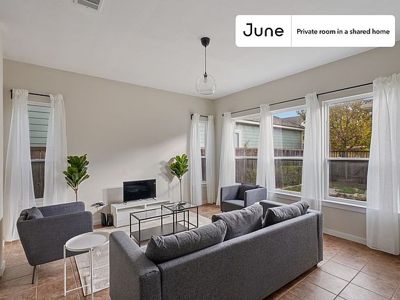 This Queen room in Cherrywood and Mueller is available on a 12 month lease or a flexible short term (31 to 364 days) lease. You pick your custom start and end date. Monthly rent rate is determined by furnishing preference, move-in date and move-out date. Speak to a June representative for recommendations on the best stay duration for the lowest rate.