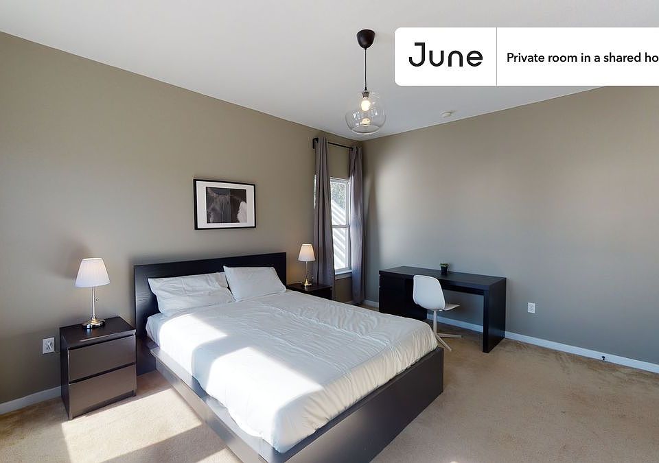 This Queen room in Cherrywood and Mueller is available on a 12 month lease or a flexible short term (31 to 364 days) lease. You pick your custom start and end date. Monthly rent rate is determined by furnishing preference, move-in date and move-out date. Speak to a June representative for recommendations on the best stay duration for the lowest rate.