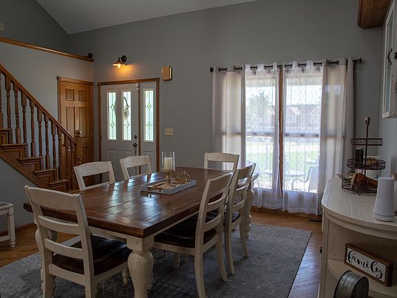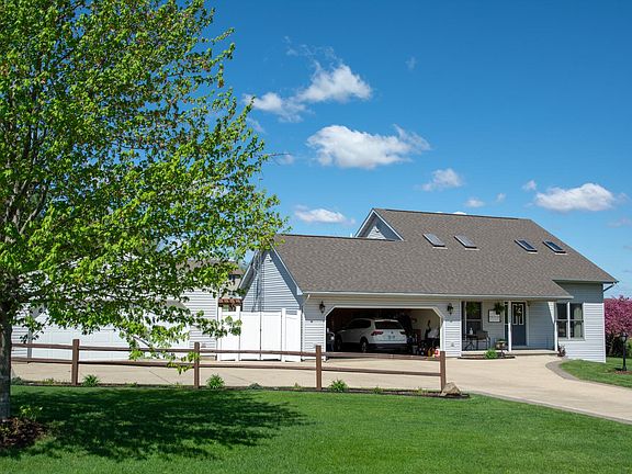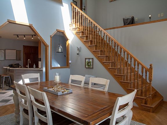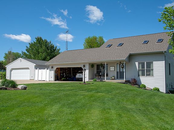 Love at first site. You won't want to miss this one. First floor master bedroom suite with full bathroom tub and separate shower. First floor laundry. Livingroom, dining room and master bedroom have vaulted ceilings. Living room with fireplace. Outdoor space is spectacular with a newly fenced back yard, deck with pergola canopy, patio, firepit and a 2 year old above ground pool with heater. 2 car attached garage and a 2 car detached garage. Recreation room in the basement. The roof is only 1 year old! Make this your happy place to live! BE GENTLE WITH THE FRONT DOOR - THERE ARE BABY BIRDS IN THE WREATH!