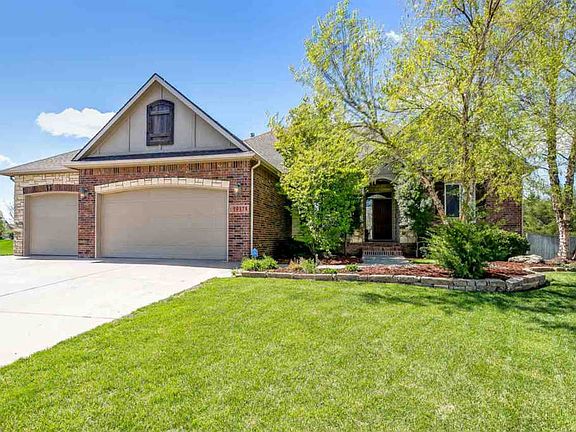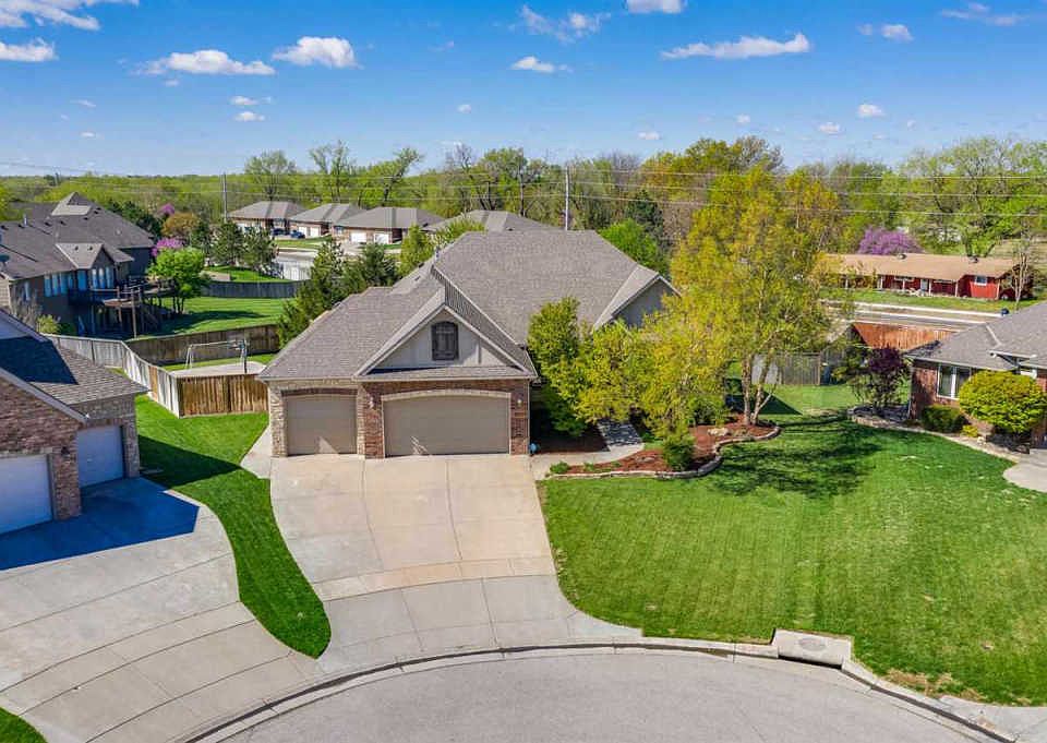 This palatial estate in Reed's Cove has absolutely everything you're looking for! Tucked away on a quiet cul de sac in east Wichita, it's in the Andover School District and has a sparkling swimming pool, a great layout, a lot that's nearly half an acre, and over 4,000 sq. ft. of space within! Pull into the driveway and notice the extravagant curb appeal, with a brick and stone facade, well-manicured landscaping, and a three car garage. Enter the home to find a bright living room. The formal dining room is attached and offers plenty of space for eating and entertaining. Through the archway you'll find a second family room that has picture windows all around that let in the bright, natural light and give you panoramic views of the outdoors. There's a fireplace with a built-in entertainment center that's the perfect backdrop for gatherings with family or friends. Cook for two or 20 in the well-appointed kitchen that offers tons of counter and cabinet space (including a pantry), TWO ovens, a built-in cooktop, and an eating bar. This is any home chef's dream! The master suite is like a retreat. It has a tray ceiling, access to the covered back deck, a huge walk-in closet, and a spa-like en suite bath with a jetted tub and a separate shower, plus a double vanity with beautiful decorative tile. Two bedrooms, another full bathroom, and a conveniently located laundry room complete this great main floor. Head downstairs and you'll find a bright basement with plenty of windows and walk-out access to the back yard. There's a big recreation room that can accommodate an entertainment area and even a pool or ping pong table. The attached wet bar makes this the perfect spot for hosting a game night with family or friends. Two bedrooms, a third full bath, and a bonus room (that could work great as an office or craft/hobby room) finish this home's layout and provide so much space to spread out! As if that weren't enough features already, head outdoors and check out your new private oasis! There are so many wonderful features packed into a half acre of space. You'll love the covered back deck, where you can enjoy the weather any time of the year. The back patio gives you room for grilling and there's even a sports court for basketball and other games. The huge in-ground swimming pool makes your home THE place to be this summer! The yard is surrounded by a privacy fence and mature landscaping, and it's kept lush and green with an irrigation well and sprinkler system. This home is tucked away but still conveniently close to highway access and plenty of shopping, dining, and entertainment options in east Wichita and Andover. Schedule your private showing and come see this gem before it's gone!