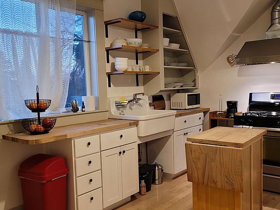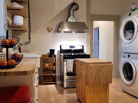 This FURNISHED, MID-TERM UNIT is on the upper floor of a duplex, located in Portland's Overlook neighborhood. It has maple hardwood floors, mini-split heating and cooling, a gas stove, and in-unit laundry. UTILITIES INCLUDED. You'll find many details from the early 1900s balanced with contemporary features such as lightning-fast internet and modern appliances. Conveniently located within walking distance of local shops, restaurants, pubs, and beautiful natural urban areas. Nearby commercial districts, such as Mississippi St and Alberta Art's District, offer endless options for entertainment and food. Walk to Portland's Trimet Yellow line train stop, or hop on I-5 or I-405, mere blocks from the house. Rent is $2500/month for one person, additionally $100 per person per month. 1-12 month leases only. Keywords: Furnished, mid-term, internet, utilities. Fees are as follows. $1000 security deposit at booking. This becomes a refundable damage and cleaning deposit at the time of occupancy. Rent is $2500 per month for the first person, plus $100 per additional person per month. Utilities are included in the monthly rent. Street parking is free, and no permit is required. A termination date is required.