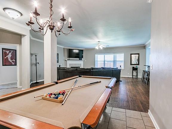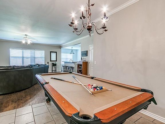 This spacious 4 bedroom, 2 bathroom Edmond home in Copper Creek features tons of updates, a formal dining room, and a 3-car garage with a storm shelter. The open-concept living room includes crown molding, a gas log fireplace, and updated wood-look tile flooring. Kitchen features include granite countertops, glass tile backsplashes, an island with a breakfast bar, a pantry, and a gas stove. The huge master suite includes double vanities, a garden tub with a separate shower, and a walk-in closet. Other interior features include ceiling fans in all bedrooms and wood-look tile in the 4th bedroom/study. Exterior features include a new fence in 2019, a full sprinkler system, beautiful front landscaping with brand-new curbing, covered back patio with a fire pit, and Class IV hail-resistant shingles replaced in 2013 which significantly reduce homeowner's insurance premiums. Neighborhood includes several ponds with walking trails and is less than 0.5 mile from West Field ES.