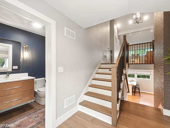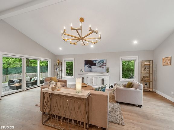 Quintessential Northfield living at its finest! Owners put more than $350,000 of updates into into This sharp modern home including a **HUGE NEW addition**, which completely transformed the property in 2022. Originally remodeled in 2018, the home now features a stunning Mid-Century Modern double door entryway and an incredibly spacious family room that connects the 1st and 2nd floors. The family room is perfect for everyday living and great for entertaining, with sliding doors that open to a new concrete patio, creating a seamless indoor-outdoor living experience. The addition includes **new Hardie Plank exterior siding** and a modernized facade, giving the home a split-level feel. The revamped entryway welcomes guests with a spacious walk-in storage closet for coats, shoes, strollers, and more. The bright, airy open floor plan is highlighted by an eye-catching Mid-Century Modern-inspired circular metal lighting fixture in a brass finish, setting the tone for the heart of the home. High-quality wide-plank flooring and a neutral palette complement any furnishings and decor. Sliding glass doors lead to a sprawling private patio, a tranquil oasis of a backyard, and a detached 2 car garage surrounded by black aluminum fencing. The outdoor space is ideal for relaxation and fun with family, friends, and pets. The sleek, modern staircase and landing connect all three floors of the home. The main lower level combines the kitchen and dining area with a fireplace and ample room for entertaining. The office/4th bedroom, third full bath and laundry room complete the main level. Upstairs, three spacious light filled bedrooms meet around a charming play space or den. The primary bedroom with en-suite bathroom now features a massive walk-in closet. The second and third bedrooms share a full bathroom down the hall. Significant investments include **$350K in renovations**: - New HVAC system including all-new ductwork, two new high-efficiency air conditioning units, and two new full-size furnaces servicing the entire home (2022) - New entryway, storage closet and family room (2022) - New half bathroom (2022) - New oven vent hood and custom tile backsplash (2022) - Newly installed black exterior trim on all windows and doors. (2022) - New bathroom and kitchen ventilation (2022) - New roof (2018 & 2022) - $40,000 in custom window treatments including custom built window shutters in 3 upstairs bedrooms (2021) - Fully remodeled kitchen and three full baths (2018) Nestled in a peaceful, quiet neighborhood, yet just blocks from Willow Road and Edens-94, this home is part of the New Trier and Sunset Ridge school districts with an astonishingly low $6k tax bill. The property features a driveway in front for guests and a 2-car garage with a driveway in the back off of Edens Lane. With a huge, gated, well-landscaped yard and gardens offering tons of privacy, this home is priced to sell quickly and will not last long.