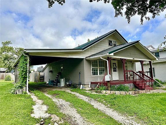 Charming 1½-Story Home with Tons of Potential! This 3-bedroom, 1.5-bath home offers classic character and great space inside and out. Enjoy relaxing on the covered front porch or take advantage of the spacious yard with a circle drive—ideal for guests or extra parking. The home features durable vinyl siding, a metal roof, and vinyl double-pane windows for energy efficiency. Inside, you'll find some original wood floors adding warmth and charm, along with a full unfinished basement adequate for storage. The property includes two carports and a detached garage, giving you plenty of room for vehicles, storage, or a workshop. With just a little TLC, this one could shine!