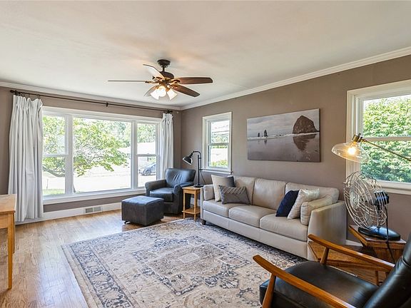 Welcome to this beautifully updated Fairmeadows ranch home, radiating charm and curb appeal. The exterior features new siding with a stone front, beautifully accented by vibrant phlox and a stunning redbud tree every spring. Natural light floods the living room through the large picture window, showing off the hardwood floors. Plenty of room to enjoy meals together in the dining area adjacent to the updated kitchen which features ample cabinetry, a stylish backsplash, and newer GE appliances all included. There are three bedrooms on the main floor all with hardwood floors and an updated full bath with pocket door. Relax in the three season porch or rear deck, perfect spots to unwind, barbeque and enjoy the outdoors. The finished lower level offers plenty of additional living space, including a 4th bedroom, family room, ¾ bath, laundry area, and non-conforming 5th bedroom. The fenced rear yard ensures privacy and safety for kids and pets. This home also features new roof and some new windows. Conveniently located near schools, bike trails, and Valley Junction with easy access to I-235 for a smooth commute. With its prime location and numerous updates, this ranch home is a must-see.