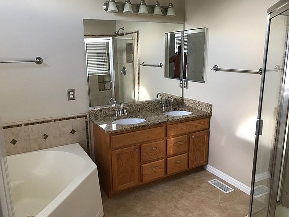 Granite counter tops, fireplace in living room, tile back splash, laminate in kitchen and living room, tile in bathrooms and new carpet throughout, double pane windows, new paint, air-conditioning, and more! Large back yard is fully fenced! 2 car attached garage and room for RV parking! Walk-in closet in the master bedroom! Separate tub and shower in the master bathroom! Pets can be negotiated depending on individual circumstances.