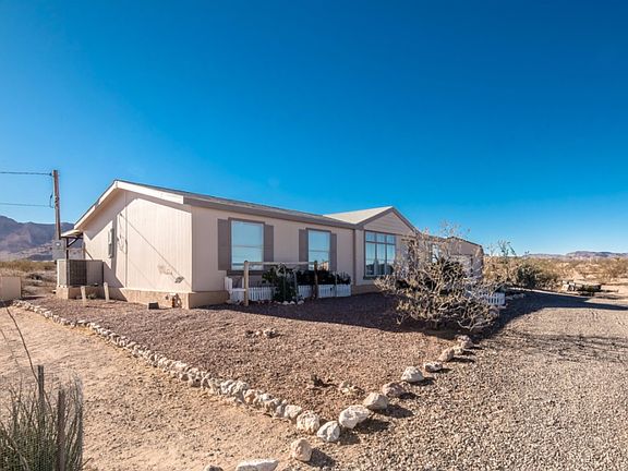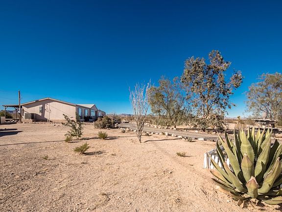 Very well maintained 3 bedroom 2 bath home sit on 2.35 acres with detached gararge! Other important features and upgrades include: *Stucco fencing *Front and back desert landscaping *Security doors *Pot shelves Open floor plan *Kitchen island *Kitchen pantry *Split bedrooms *Master bedroom offers his and hers walk- in closets, his and her vanities, and walk-in shower with seperate tub *Indoor laundry *2560 gallon water storage tank *Covered back patio with hot tub perfect for enjoying those panoramic mountain views! Just a short commute to Bullhead City AZ / Laughlin NV area and the Colorado River!