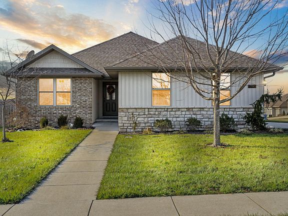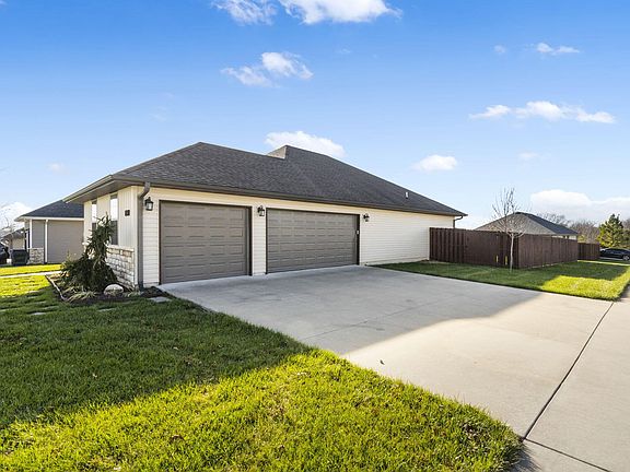Step into perfection with this stunning 3-bedroom, 2-bathroom home built in 2017, offering 1,658 square feet of meticulously maintained living space. From the moment you arrive, you'll notice the pride of ownership in every detail, from the pristine landscaping on its desirable corner lot to the flawless exterior finishes.The open floor plan provides a seamless flow between the living room, kitchen, and dining area, making entertaining a breeze, while the modern design elements add a touch of sophistication. Whether you're hosting friends or enjoying a quiet night in, this home provides the perfect backdrop.Out back, the large covered patio serves as the perfect space for hosting gatherings, barbecues, or simply enjoying a peaceful evening outdoors.Completing the package is a spacious 3-car garage, offering plenty of room for vehicles, storage, or workspace.Located in a quiet, idyllic neighborhood in Ozark, MO, this home is the epitome of move-in-ready living. Don't miss out on this rare opportunity--schedule your private showing today!