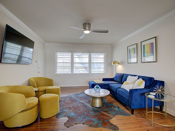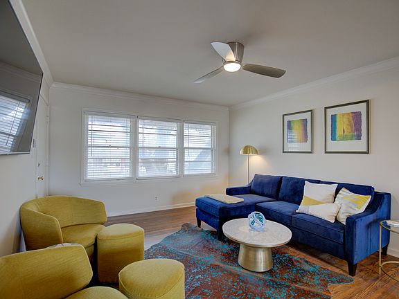 Excellent location 2 block from Gathering Place, and across the street from Daigoro restaurant on Riverside. Gorgeous 2 bedroom with refinished oak floors, crown, 3 ceiling fans, modern sputnik DR chandelier, quartz kitchen, large flat screen tv brackets in living and master, 11 windows, 5 closets, washer/dryer in unit, covered parking, and numerous grounds for outdoor entertaining.
