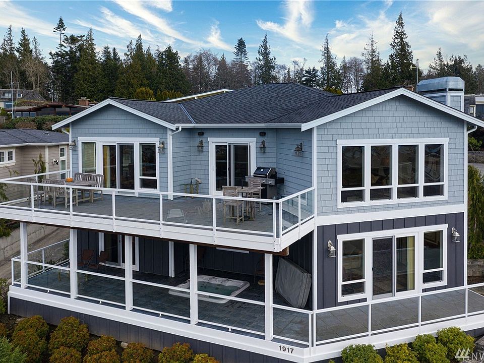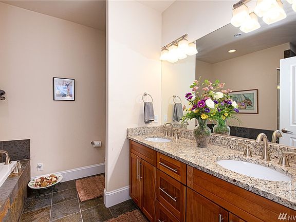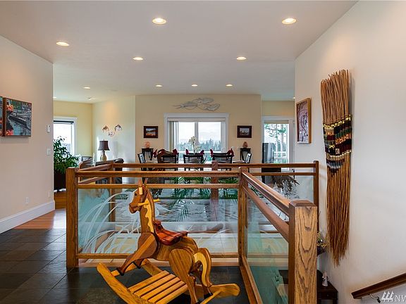 Custom built home w/high end interior & panoramic views of the San Juan Islands, mtns, 3 waterways & marina, home features level entry, radiant floor heat, hrwd floors, built in speakers, stained concrete lower level, hot tub & view decks. 2 Masters & 5 piece en suites, Gourmet kitchen, living & din. room, laundry, TV RM & powder rm. This 2 BR has downstairs has a lrg Mstr suite, Mstr Ba, office w/family room converts to 3rd sleeping area. Walk to ferry, marina, beach+enjoy area hiking trails!