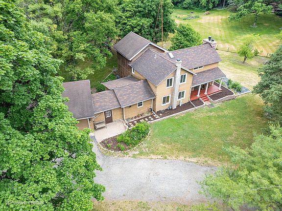 Enjoy peace and tranquility in this freshly renovated "ORIGINAL FARM HOME" situated on approximately 1.3 quiet wooded acres in the beautiful Chapel Hill Oaks subdivision, located just minutes from the popular Chapel Hill golf course. The interior has been freshly painted throughout. The spacious eat in country kitchen boasts new quartz countertops beamed ceilings and a picture window overlooking a magnificent back yard with play area and swing set. Hardwood floors are featured throughout the home. We move on to the formal dining room and living/family room also featuring beamed ceilings and the first of two wood burning authentic stone fireplaces. There is a large first floor master bedroom (could be an in-law arrangement) with ensuite bath and sliding door access to the spacious deck. Laundry is right her on the first floor.. Going on; the second floor features three more bedrooms which include the original huge master with newly renovated full bath. Lets not forget the full finished basement featuring the second magnificent stone woodburning fireplace and convenient outside entry. Don't forget to check out the magnificent 634 square foot 28 X 23 three car fully insulated garage, all set up for the perfect handyman workshop with finished walls, workbench and full attic storage! This is the ORIGINAL FARM HOME for the subdivision offering historic significance to the beautiful Chapel Hill Oaks area of McHenry, a quiet area perfectly located to the shopping and conveniences of McHenry and Johnsburg. Listing Broker is related to seller