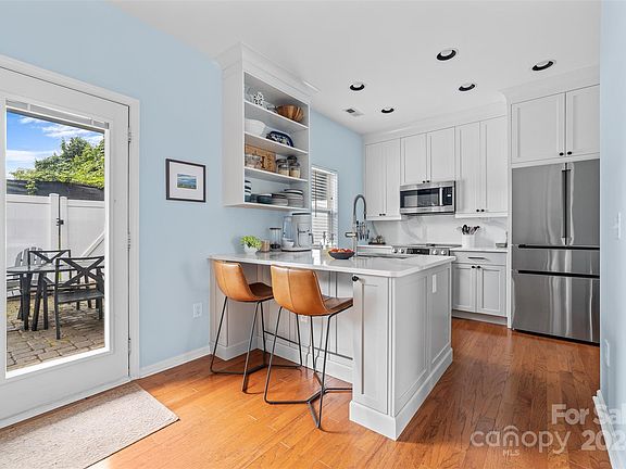 Tastefully updated end-unit townhome in incredible Wilmore location. Expect a light and bright first-floor living area with gorgeous built-ins leading into a renovated gourmet kitchen. Open, intuitive floor plan lends itself to entertaining. Charming patio space with privacy fence allows you (read: your pet) to enjoy the outdoors and private, end-unit location. Upstairs, find two well-appointed bedrooms with en-suites. Primary bathroom impeccably renovated. New roof installed 2024, and rest easy knowing exterior maintenance is handled by the HOA. Quick walk to everything South End has to offer or be Uptown in minutes, all while maintaining charming Wilmore neighborhood feel. (Plus you never have to pay for parking in South End/Uptown again). 100/10 would recommend.