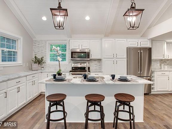 Stunning, fully renovated colonial located in highly sought after Northern Calvert. Home offers the most beautiful finishes.Kitchen boasts gorgeous white-marble counters with huge center island, vaulted ceilings with wood paneling, S.S. appliances, subway tile back-splash, slider to enormous deck. Master BR with elegant en suite bathroom, and double closet. Fully finished basement, NEW HVAC!