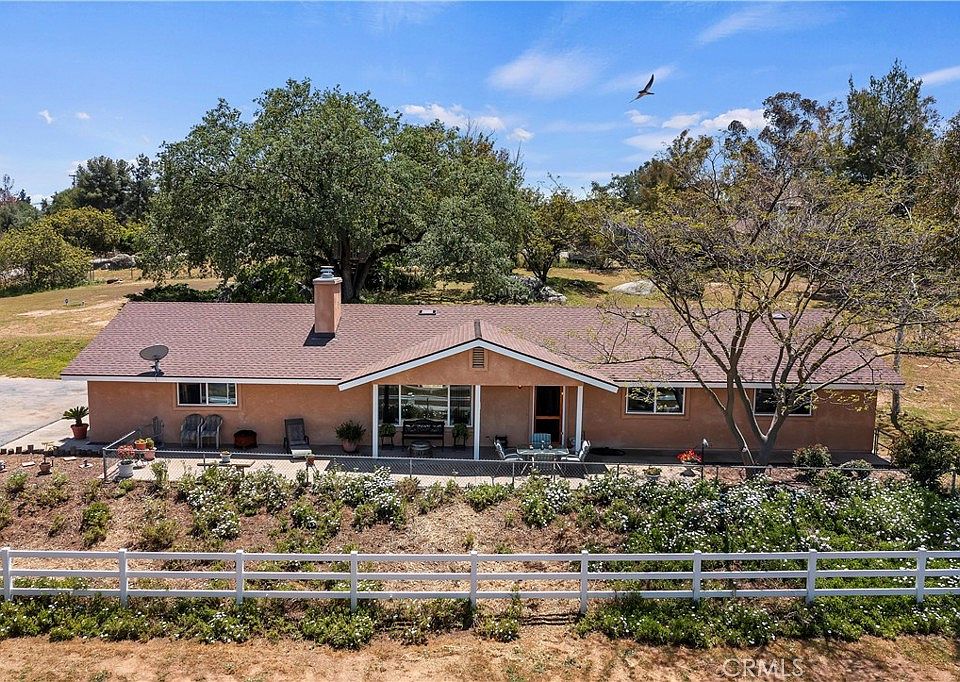This stunning 3 bdrm, 2 bath home is nestled on 2.16 acres of beautiful & lush land, complete with equestrian facilities that will delight horse lovers & for the outdoors enthusiast, it's only a mile or so to Hellhole Canyon County Preserve, with 1907 acres that is wonderful for riding, hikers, campers & more, right out your gate & down the road! Hike some of the 13.5 miles of moderate-to-advanced trails or ride the horses to the entrance & explore. The main trail leads to the Hell Creek. Along the creek bed, hikers will find a reprieve from the sun under mature Sycamore & Oak trees. Enjoy riding your favorite horse for hours! Then return to your home that is decorated with the country charm that equals the equestrian feel of this hidden gem. As you approach the home, you'll be greeted by the beautiful landscape, complete with mature trees, lush grass, & a picturesque setting. The home boasts a spacious & open floor plan, with a large living room that features high ceilings & plenty of natural light. The living room flows seamlessly into the dining area & kitchen, creating a warm & inviting atmosphere that's perfect for entertaining guests. The kitchen is equipped with modern appliances, ample cabinet space, & a breakfast bar that's perfect for quick meals or casual dining. The three bedrooms are all generously sized, with plenty of closet space & natural light, providing comfortable and inviting spaces to relax & unwind. But the real highlight of this property is the equestrian facilities, which include a 3-stall barn, tack room & storage, 2 paddocks, a riding arena, a round pen, & grazing pastures. Horse lovers will appreciate the convenience of having all these amenities on their own property, allowing them to easily care for & enjoy their horses. Additionally, the property offers plenty of outdoor space for relaxation & recreation, including 2 spacious patios that are perfect for barbecues, outdoor dining, & relaxing. Want to build an ADU? There is plenty of room. The whole 2+ Acres is usable! You'll love the privacy & seclusion that this property offers, while still being conveniently located near shopping, dining, & entertainment. With its equestrian facilities, lush landscape, & comfortable living spaces, this home is a dream come true for anyone looking for the perfect blend of outdoor living & modern amenities. Valley Center has the small horse town feel that is hard to find in Southern California, let alone San Diego County!