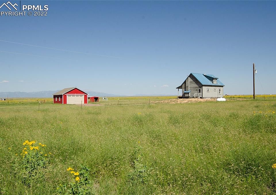 Wide open spaces, infinite views, and custom construction! This is NOT a wide, flat manufactured home! If you enjoy serenity and views, you may want to linger on the wide, covered front porch with beautiful views of Pikes Peak, the Sangre de Christo mountains, the Spanish Peaks, and glorious sunsets! But it's worth coming inside too! Step into the primary living space with its soaring 20 ft vaulted ceiling, tile floors, cozy fireplace with river rock that goes all the way up to the ceiling, pony wall to designate the dining area, and beautiful kitchen with granite counters and all appliances included! Enjoy the convenience of a beautifully tiled full bathroom and two bedrooms on the main level. Upstairs you'll find your owner's retreat--both the master bedroom and attractively appointed master bath feature high, vaulted ceilings, and the master bedroom steps out onto a private deck with gorgeous views! The basement is mostly unfinished, but several of the walls are already framed (enclosing both the laundry room and the utility room with its newer water heater and dual tank water purification system) to make things easy for you, and the roughed in plumbing for another bathroom makes this space ready and easy to finish! Pride of ownership and new touches (recently updated light fixtures, newer flooring, recently painted exterior, and more) are everywhere! The oversized detached garage gives you plenty of room for two vehicles plus storage or workshop space! The new DOMESTIC WELL (allows you to water livestock and irrigate an acre of garden) and cistern system sets this place apart! And everything is ready for your horses or other animals--the whole property is fenced, and cross fenced (front 10 acres, back 25 acres, plus a large paddock for horses), plus there's a loafing shed, hay shed, and beautiful round pen! This is an easy drive to Schriever AFB, Fountain and Ft Carson! Come fall in love and make it home!