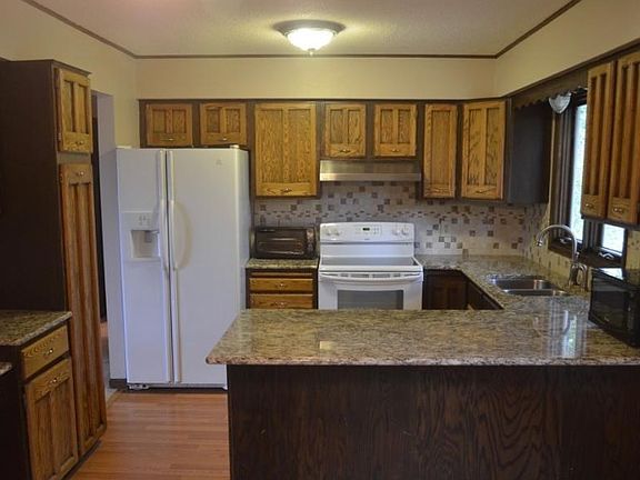 Welcome home! This 4 bed 3 bath home is move in ready. Check out the beautifully remodeled kitchen w/ granite counters, tiled backsplash & wood floors. Relax on your deck overlooking your private wooded backyard. There's some new countertops & light fixtures in the bathrooms. New Furnace, AC, carpet upstairs & some newer windows & patio doors. Cozy up on those chilly nights in front of your fireplace. Great location in a cul-de-sac, shopping , close to South Lotus Lake & park.