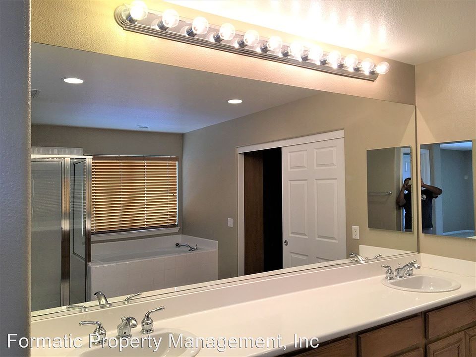 Oversized 5-bedroom pet friendly home with HUGE backyard! - This 5-bedroom, 3-bathroom home with a 3-car garage has amazing appeal from the curb, on the inside, and in the backyard! The front yard features a large patio, upscale stone accents, and established landscaping with garden bed lighting. High end tile greets you in the front entryway, with the extended living room running from one corner of the house to another on your left. The kitchen has plenty of cabinet space, under the cabinet lighting, granite counter tops, a spacious island with bar leg recess on one side, and a large table nook surrounded by windows on three sides looking over the backyard. The second floor features 3 standard bedrooms, a hallway full bathroom with double vanity, and the master suite. The master suite's large bedroom moves into the master bathroom, with a garden tub, separate shower, double vanity, and an amazing oversized closets with high-end elegant built in shelving and cabinets to maximize your use and enjoyment. The garage is extra wide for two large cars, and two cars deep on the right side. The floor is sealed, and there are high-quality built in shelves and cabinets on both sides of the garage. The backyard is massive, and is a mix of large cement patio areas complete with a a permanent basketball hoop and play area. This is a perfect yard for pets, kids, entertaining guests, and relaxation! Call today to schedule a showing! (RLNE3257469)