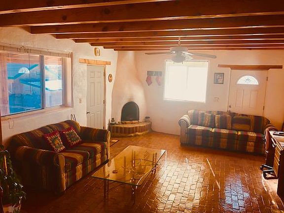 OFF THE GRID LIVING! Peaceful and Private Location With Panoramic Views of the Sandia Mountains on 1 AC. Single wide 2 bedroom/1 Bath with an additional 320 Sf Adobe Greatroom! Wood Burning Kiva Fireplace,Brick Floors, Beautiful Beamed Ceilings. Propane Refrigerator, Range & Stove All Convey! Self Reliant No Utilities to Pay!