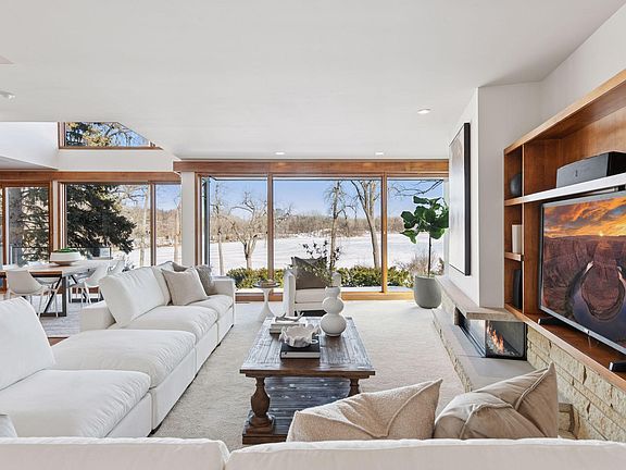 Like-new construction overlooking Cedar Lake. Open floor plan with an abundance of natural light from the walls of floor to ceiling windows. Gleaming wood floors on the main floor and freshly painted throughout. Large living room with panoramic views of the lake and opens to the dining room with wine/ coffee bar and access to the large deck. The kitchen features a center island, tile backsplash, under cabinet lighting and lots of storage. Main floor office with an additional office in the upper-level loft and access to the balcony. Stunning primary suite with east facing views of the lake and the downtown skyline, makes for a lovely sunrise, two walk-in closets and a private bathroom with walk-in shower. Additional bedroom, full bathroom and laundry room. The walkout lower level was thoughtfully designed with a cozy family room, second kitchen, two bedrooms, full bath and a second laundry room, great for hosting guests or use as a secondary suite. Rare three car garage and native wildflower garden. Enjoy all that this urban oasis has to offer, just steps to the lake, tons of walking and biking trails and city beaches. Wonderful Cedar Lake community.