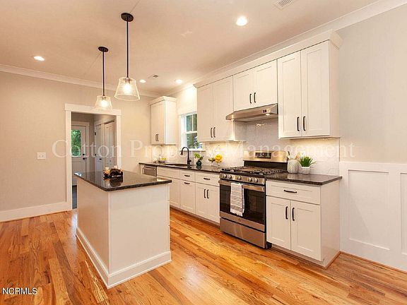 This home was constructed in 2022 but offers the historic feel of an older build near downtown Wilmington. Centrally located, this home is special! With almost 1,500 sq ft, 3 BD and 2 bath there is ample space for everyone. The open concept living boasts lots of incoming light, hardwood flooring, kitchen with an island, granite countertops, stainless steel gas stove griddle and dishwasher. Enjoy top quality finishes such as tiled walk-in shower in the master, dual vanity sinks, and a garden soaker tub in the guest bath. Relax on the front porch or in the fully fenced in backyard. *(2) Dog Limit with applicable fees and pet rent. Washer/Dryer hookup available. Professionally Managed by Cotton Property Management, representing the owner.